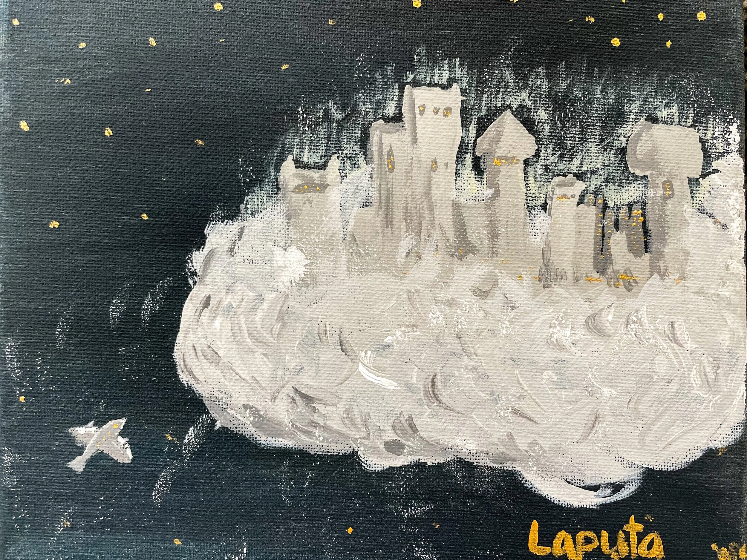 Then, a few weeks after moving into John and Joyce’s former home, around Christmas, I had a dream. The kind of vivid dream that burns itself into your memory, but you write it all down anyway so as to not lose any details. In the dream, Marissa and I were in zenpond with John and Joyce. They hosted us warm heartedly in the kitchen. We went through each room together as they did their favorite things one last time: playing with the cats, feeding the fish, blasting music on the speakers, and cooking a meal all together. It was a kind of “moving on” ceremony. At the end of the dream, John and Joyce got into a small plane and he flew them into the night towards a castle in the sky shrouded by clouds. The next day, I made a feeble attempt at painting the castle. This was my first time painting in years. You can see my skill was (and is) far below John’s own castle painting (both below). But it was a spark that has burned into a passion for visual art, for the ability to coax forms from a wordless place.